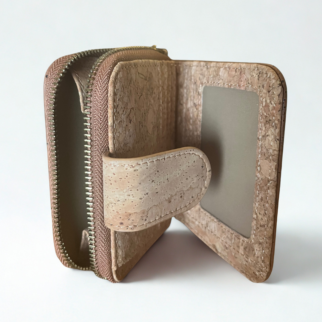 This sustainable small zip around purse is crafted from 100% genuine Cork leather.